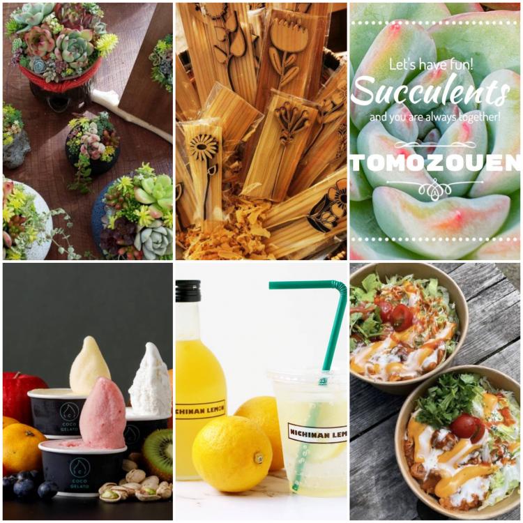 毎年大人気の多肉植物やドライフラワー、ミニ盆栽などバラエティー豊かなショップが出店。各種キッチンカーも並び、レモネードやジェラートなどを提供します。