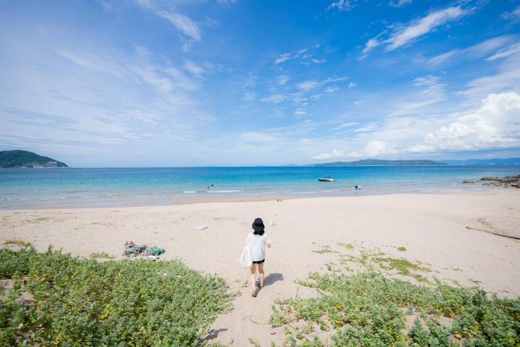 「唐泊VILLEGE」から徒歩1分ほどで行けるプライベートビーチは、海が透き通ってエメラルドグリーン♪糸島ケ浦やサンセットビーチは有名ですが、「うしろ浜」というこの浜辺もとってもキレイだそうですよ。ぜひ立ち寄ってみてくださいね。