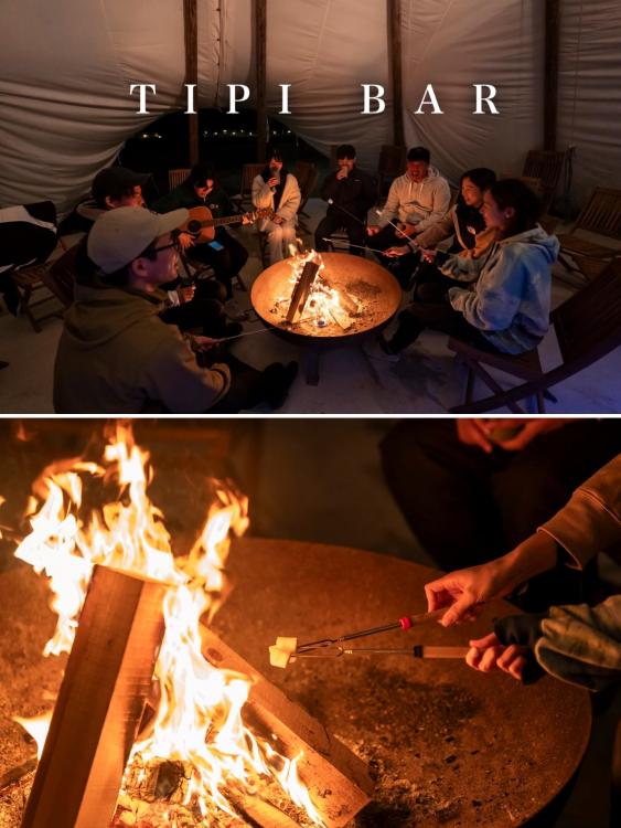 宿泊者限定の無料バー「TIPI BAR」は中でも人気のイベント。
