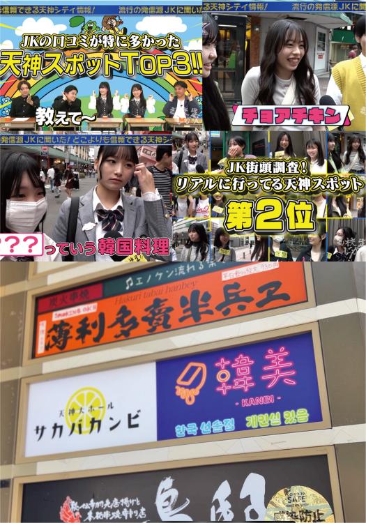 「高校生が世の中を変える」をテーマに、福岡・佐賀の高校生の若き才能を爆発させた企画をお届けする高校生参加型バラエティ番組『高校生のじかん』(KBCテレビ毎週土曜16時から放送)。ここでは『流行の発信源JKに聞いた!どこよりも信頼できる天神シティ情報』に出てきた現役女子高生おすすめの天神ホットスポットを厳選紹介!
