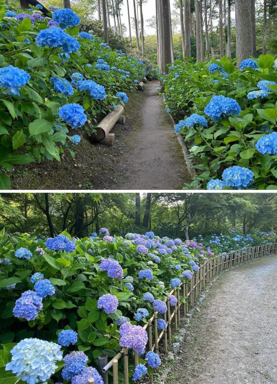 この時期はアジサイだけじゃなく、モミジやドウダンツツジの新緑が楽しめるのも『呑山観音寺』の魅力のひとつ。境内を歩けば「カッコー、カッコー」とカッコウたちのおしゃべりが聞こえてきて、どこか幻想的。夏の訪れを感じます。