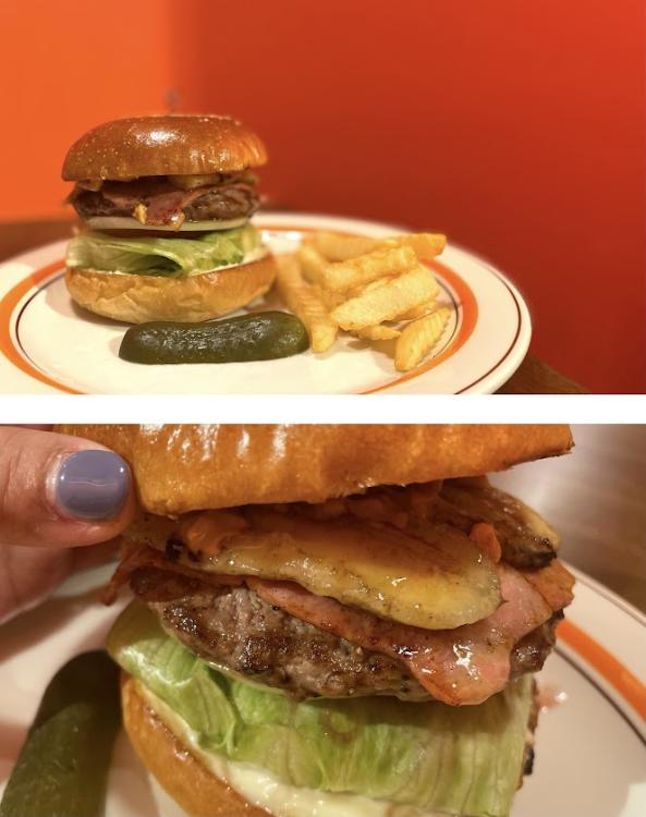 「これしか勝たん!」と富吉さんが自画自賛するオリジナルメニューが「エルビスバーガー」(1980円)。あのエルビス・プレスリーが愛したという「エルビスサンド」の具材、バナナ、ピーナッツバター、メープルシロップ、ベーコンを挟んでいます。