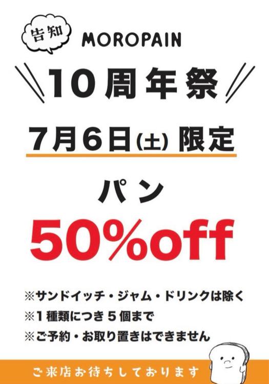 人気コーナー『毎日パン日和』にも登場いただいた『モロパン』ですから、本当は10周年のあれやこれやを振り返りながらお祝いしたいところですが、この「10周年祭」が凄すぎるので今回は割愛しまして、イベント緊急告知のみとさせていただきますmm