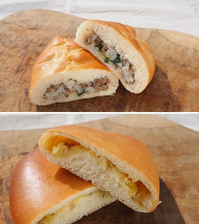 ロシアでは油で揚げない、焼いたピロシキが主流。