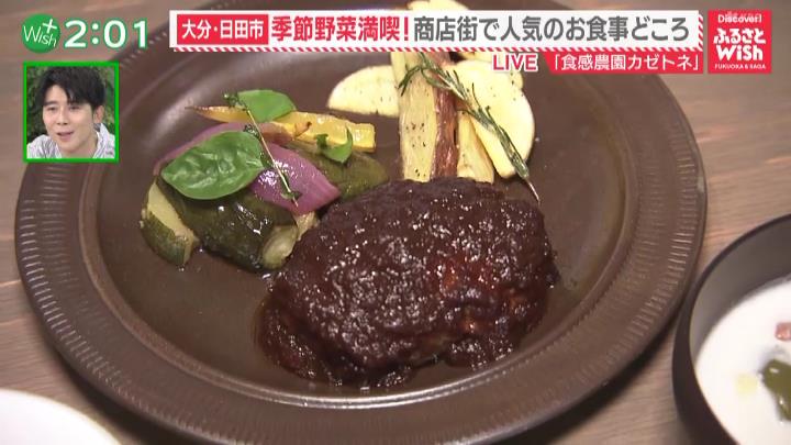 席に着いた大川リポーターの目の前に運ばれてきたのは「今日のごはん」(1980円)。この日は、タマネギソースのハンバーグがメインで、付け合わせにはハーブマリネや2種類のポテトフライ、夏野菜を使ったココナッツスープや揚げびたしなど、自家製野菜がたっぷりのメニュー!ハンバーグを試食した大川リポーターは「タマネギソースが甘いです!中もタマネギの食感がシャキシャキとしていて、とてもおいしいです」とその味わいに感動!