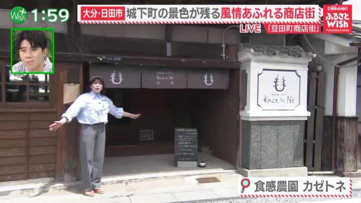人力車に乗って大川リポーターがたどり着いた場所は、豆田町商店街の一角にある「食感農園 カゼトネ」。大正時代に建てられた古民家をリノベーションしている店舗ということで、外観もとてもおしゃれ!店内も日田杉を使っており、木のぬくもりも感じられます。