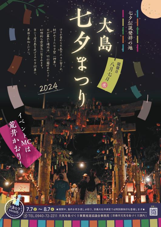 世界遺産に登録された“「神宿る島」宗像・沖ノ島と関連遺産群”の一つ「宗像大社中津宮」(福岡県宗像市大島)で、2024年8月7日(水)に『大島七夕まつり』が開催されます。