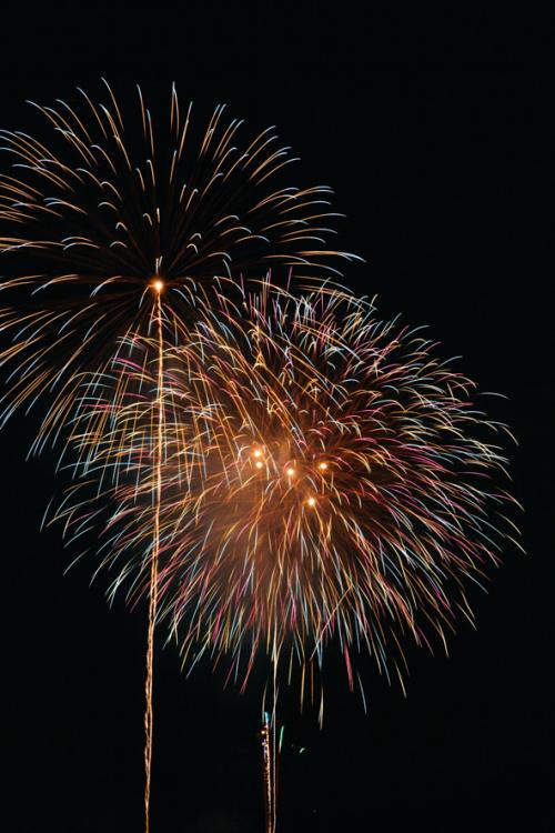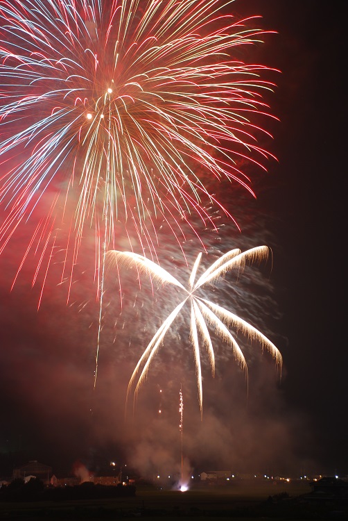 最後は花火のカウントダウンがスタート。20:10~約2000発の花火が、5年の穴を埋めるべく、美しく夜空を彩ります。2カ所から打ち上がる迫力を楽しんで‼