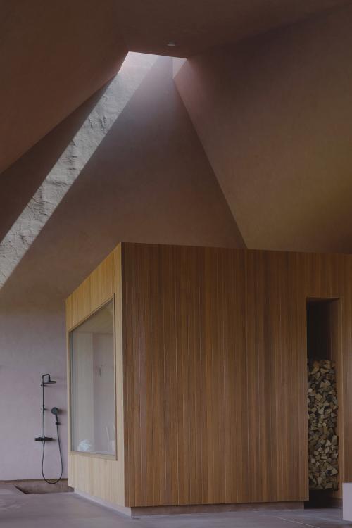 外と中の境界線がないアウトドアリビング。ここにいると風がすーっと通り抜けていくのがよく分かる。そして時間の経過と共に、天窓から美しい光が現れる。初めは優しく、徐々に強くなっていく。見惚れるほどの美しさがここにはあります。