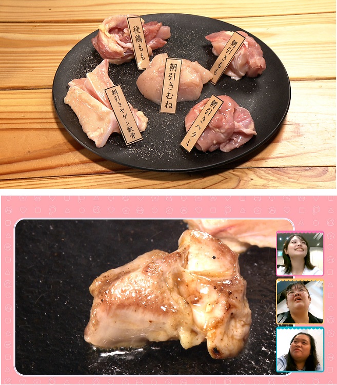『朝引き鶏 5種盛り』(種鶏もも、朝引きもも、朝引きハラミ、朝引きヤゲン軟骨、朝引きむね/1580円)