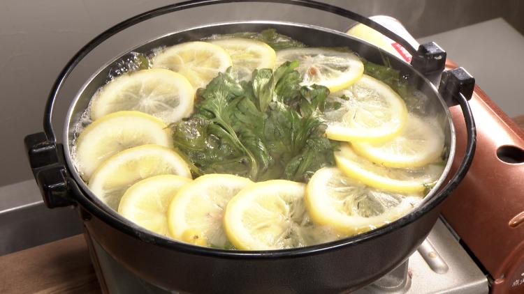まずはお刺し身で、次に期間限定の「レモン鍋」でいただきます!