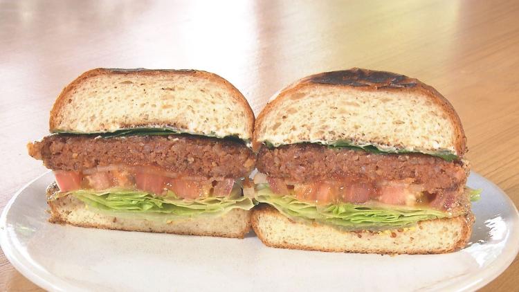 植物性食材100%でできたハンバーガー。パティはひよこ豆をベースに玄米やクルミ、ビーツなどを入れ、ヘルシーだけどボリューム満点の一品に。もちろん、明太子も植物性!アマランサスを昆布、豆板醬、豆乳クリームで味付けして作るそうです。ケチャップやマヨネーズも植物性。