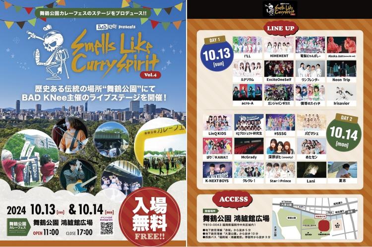 音楽フェス「BAD kNee presents Smells Like Curry Spirit Vol.4」もカレーフェスと同時開催!バンドやアイドル、シンガーと幅広いアーティストが出演します。