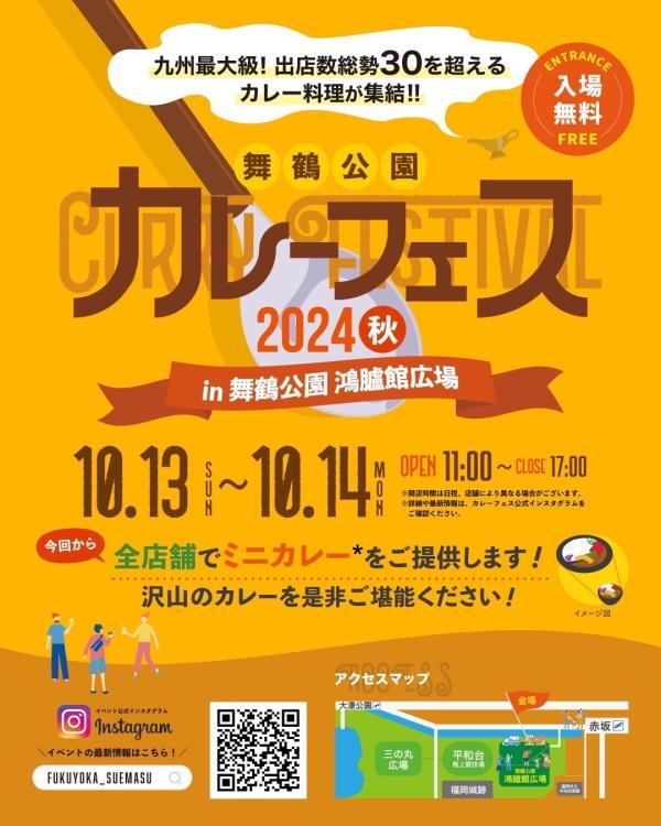 10月13日(日)、14日(月・祝)に、出店総数30店舗を超えるカレーイベント『舞鶴公園 カレーフェス2024秋』(福岡市中央区)が開催されます。