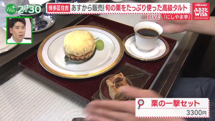 また10月から日中帯は高級タルトの専門店としての営業がスタートしたということで、大久保リポーターの目の前に出てきたのは『栗の一撃セット』。もともとパティシエをしていた西山さんが以前から作っていた『栗の一撃』というマロングラッセのタルトと、フレッシュフルーツを使ったタルト、そしてコーヒーがセットになっています。『栗の一撃』はイタリアの栗をふんだんに使っており、手で食べるのがおすすめだそう。