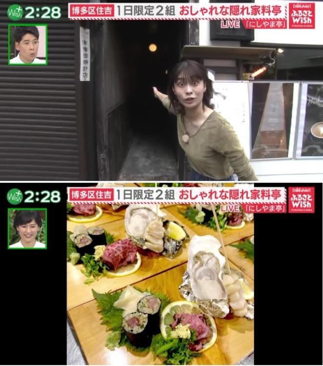 つづいて大久保リポーターは「楽水園」から徒歩5分ほどの場所にある「にしやま亭」へ!細長く、暗い入り口をドキドキしながら進んでいくと、そこは知る人ぞ知る古民家の“隠れ家”料亭。オーナーの西山誠さんが出迎えてくれました。“高級家庭料理”というジャンルで、お客さんのわがままをできる限り聞く、というスタイルで出しているそうです。
