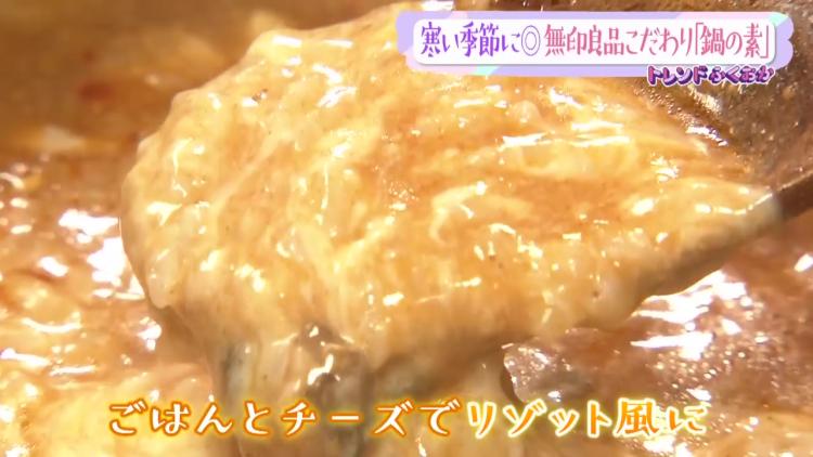 〆にご飯とチーズを加えて、とろ~りリゾット風にしていただきます。トマトや野菜の酸味も加わえて、チーズのとろみも…美味しいですよ!