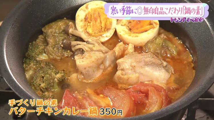 無印良品の人気商品のバターチキンが鍋で味わえるバターチキンカレー鍋です。人気のバターチキンカレーが鍋にスープカレーのような感覚で野菜もたっぷり食べられますよ。