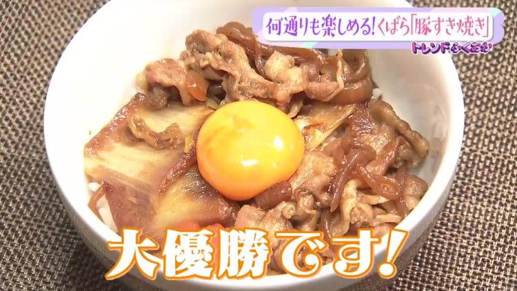 ご飯の上にすき焼きを乗せて、卵を割って…すき焼き丼も楽しめます。