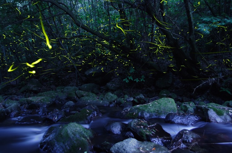 秋月城近くを流れる野鳥川沿いにホタルが乱舞。上流のカフェが期間限定で特別営業します。