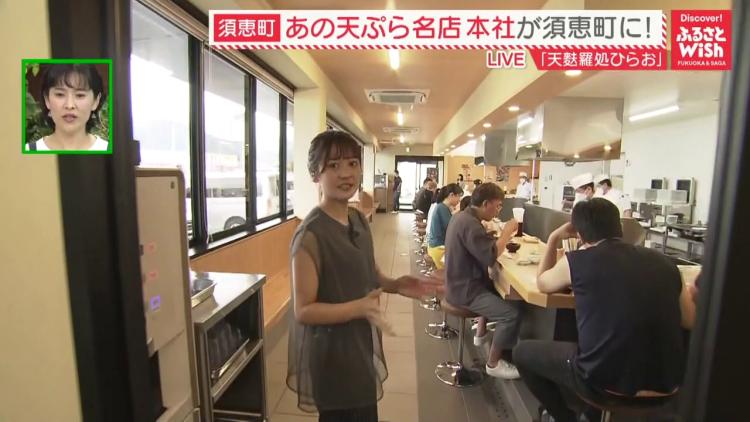 中継でお邪魔した「天麩羅処ひらお 須恵店」は、福岡県糟屋郡須恵町にあります。 お昼を過ぎた2時ですが、店内はたくさんのお客さんで賑わっていて、その人気ぶりがうかがえます。
