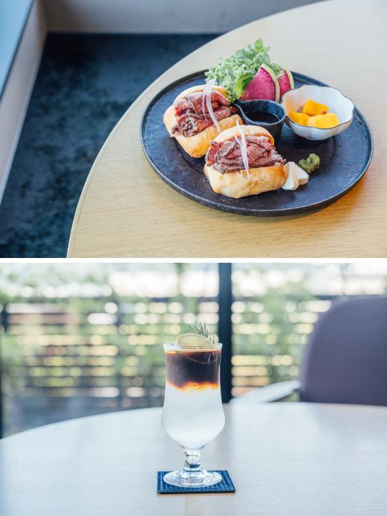 ある時は焙煎風景を眺めながら、ある時は篠栗の山々を眺められる窓辺のテーブルに。絵画の傍らのテーブル席は美術館のようだ。何度か訪れて慣れてきたら、カウンター席でバリスタと言葉をかわすなど様々な楽しみ方が可能。特に午前中の10時頃は比較的空いており、ゆったりとした時間を過ごすのにおすすめだ。