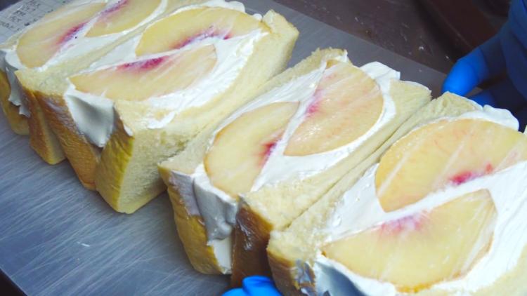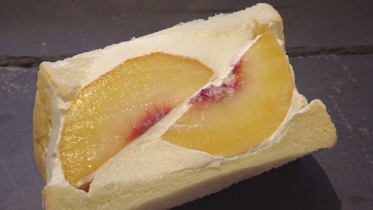 大玉の桃を贅沢に半分も使ったサンド。