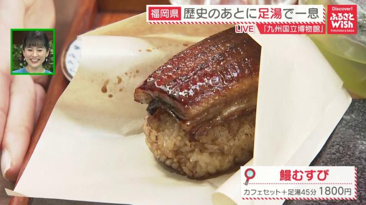 博物館で歩き疲れた足を癒やしている大久保リポーターの席に、おすすめメニューの「鰻むすび」(1800円)が運ばれてきました!一口食べた大久保リポーターは「おいしい!ご飯がもちもちふわふわで。うなぎもどうしてこんなにふわふわなんですか?」と満足そうな表情です。「うなぎを蒸し焼きにすることで、ふっくらと食べやすくなっています」と上池さん。