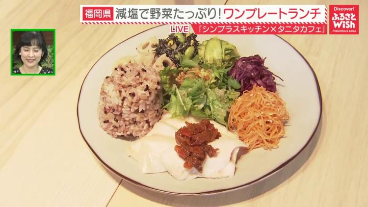 次にご紹介するのは、タニタカフェとコラボした「減塩ワンプレート(鶏むね肉のポシェ)」(1400円)。こちら、半日分の野菜をワンプレートで摂取できるメニューなんです。