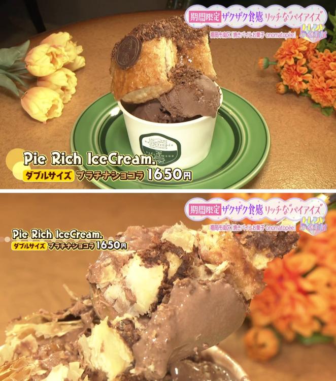 看板商品のパイを大胆にトッピングした進化系「Pie Rich Ice Cream. ダブルサイズ プラチナショコラ」(1650円)が登場。