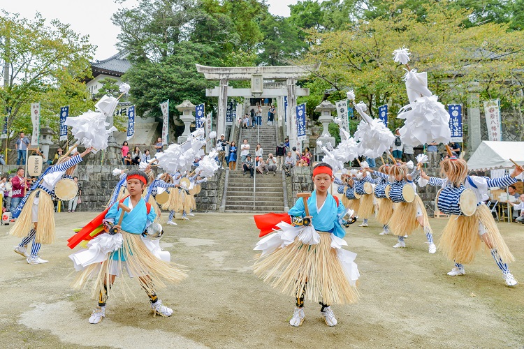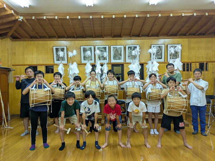 舞楽を担うのは地元の少年たち。今年の参加者は、小学3年生から大学生までで、楽方が12人、鉦方が2人、太鼓方が2人(笛方は大人)。父親が昔参加していたという子も多く、小学校に上がる頃から手ほどきを受けているそう。少子化や人口減少が進む現代において後継者不足という課題に直面しながらも、地域に深く根ざした郷土の祭りとして、その伝統を後世に受け継いでいます。