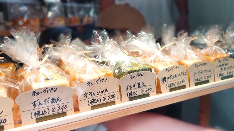 手のひらサイズがかわいいキューブパンは、お店の看板商品。