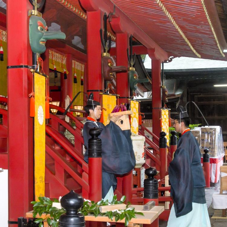 期間中は「御神幸行列(ごじんこうぎょうれつ)」や「稚児行列」をはじめ、連日さまざまな神事が厳かに行われます。