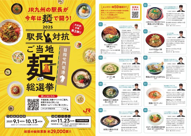 JR九州の各駅長おすすめのご当地麺が優勝の座をかけて競い合う『2025駅長対抗「ご当地麺」総選挙』の投票がスタート!