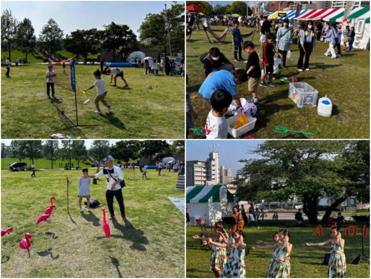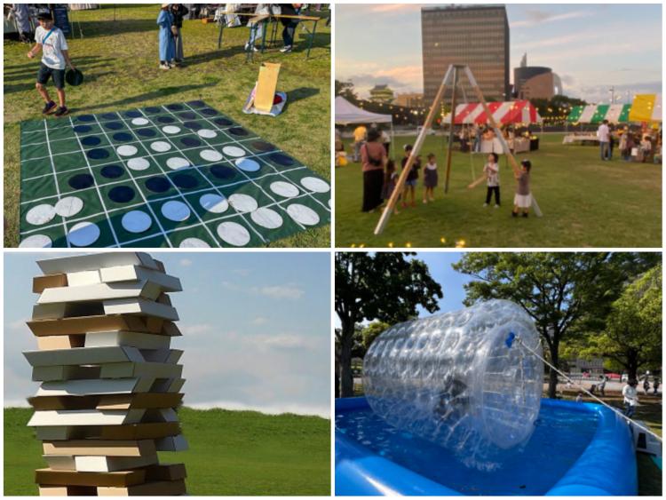 その他、バトミントン、シャボン玉、輪投げ、フラダンス、ブランコ、2mオセロ、段ボールジェンガ、ウォーターロールが楽しめるコーナーも登場。