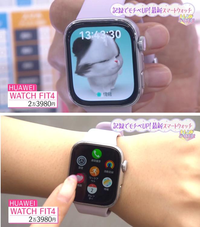 今村リポーターが「HUAWEI WATCH FIT4」を装着してランニングに挑戦!ウォッチの側面にあるボタンをタップし、「ワークアウト」から「屋外ランニング」を選択。