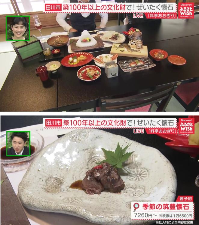 旬の食材をふんだんに使った「季節の筑豊懐石」(7260円〜 ※映像の料理は16500円/要予約)に舌鼓を打ちます。