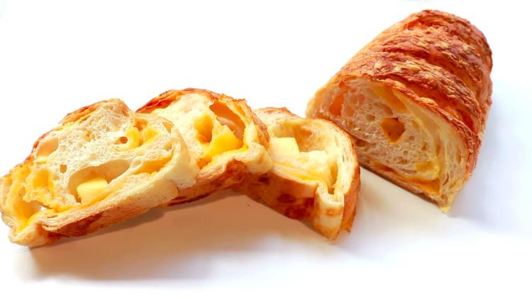 フランスパンの生地に、5種類のチーズを贅沢に折り込んだ人気商品。