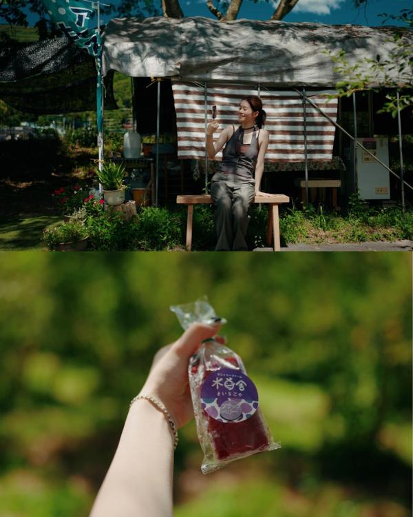 農園にはバッタやカエルが元気に跳ねています。子ども達にとっては最高の遊び場そのものです。遊び疲れたら、休憩に冷たいアイスキャンデーを。ブルーベリー・ブラックベリー・イチジクの3種類があり、暑い日は体に染み渡る美味しさです。