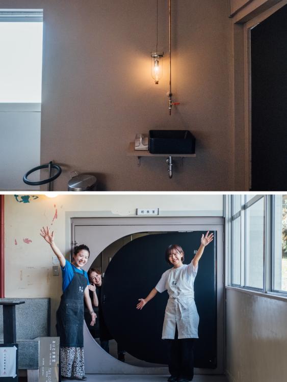 福岡県田川市猪国に、一風変わった扉がある。旧猪位金小学校の廃校跡地「いいかねPalette」の一角、給食室と書かれたアーチ状の黒い扉だ。その奥に広がるのは「おいとま食堂」─元給食室を改装した、光と闇をコンセプトにした特別な空間である。