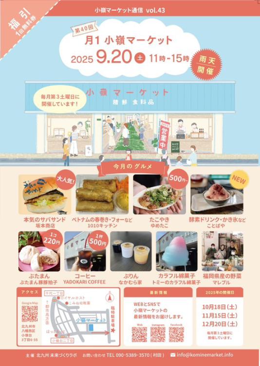 おいしい、楽しいがギュッと詰まった『第40回 月1小嶺マーケット』に、ぜひ遊びに来てください!