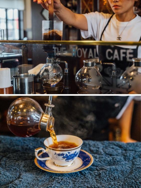 『英国亭』では冷凍食品は一切使用せず、すべて手作りで提供しています。特にサイフォンやネルドリップで淹れるコーヒーは絶品で、「毎日挽いてるから新鮮さが違うんです」と首藤さんは自信を持って語ります。