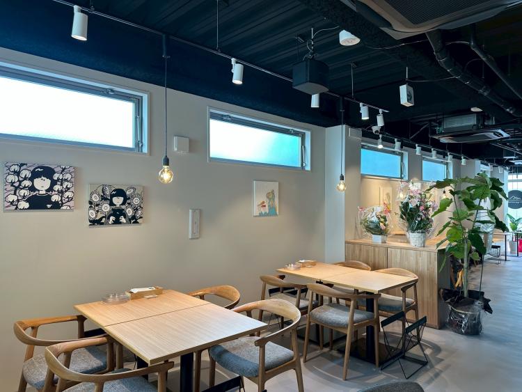 福岡のアーティストの絵が飾られ、ちょっとしたギャラリーのような空間で、都会にいながら落ち着いたひとときを過ごせます。