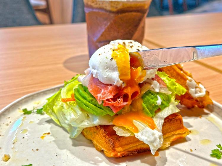 特に卵を割った瞬間の黄身のとろけ具合は、ワッフルの美味しさをさらに引き立ててくれる最高の演出です。