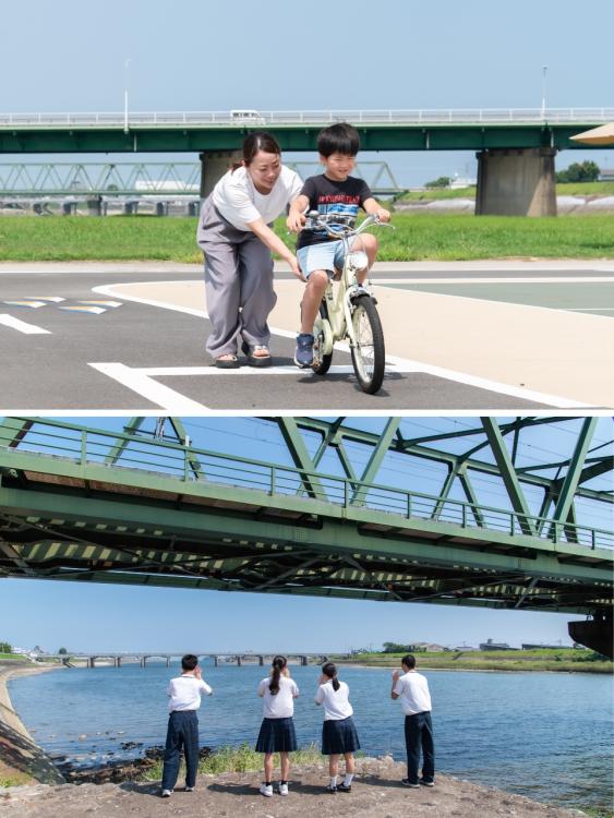 現在、山国川河川敷では地域の憩いの場づくりが進んでいます。小さなこどもたちが安全に水遊びできる浅い水路や、家族でくつろげる芝生広場、そして多目的に使えるスポーツエリアの整備が行われています。