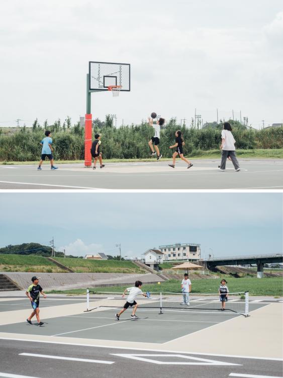 河川敷の多目的広場では、バスケットボールはもちろん、近年注目を集めているピックルボールも楽しめます。ピックルボールは、テニスよりもコートが小さく、誰でも気軽に始められるスポーツです。幼稚園児からおじいちゃんおばあちゃんまで、三世代で一緒にプレーできるため、家族の絆を深める素晴らしい機会となります。