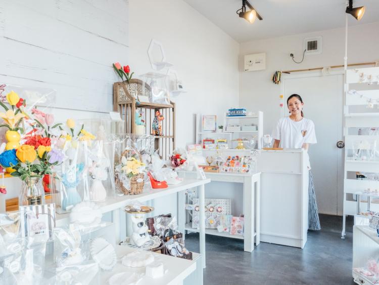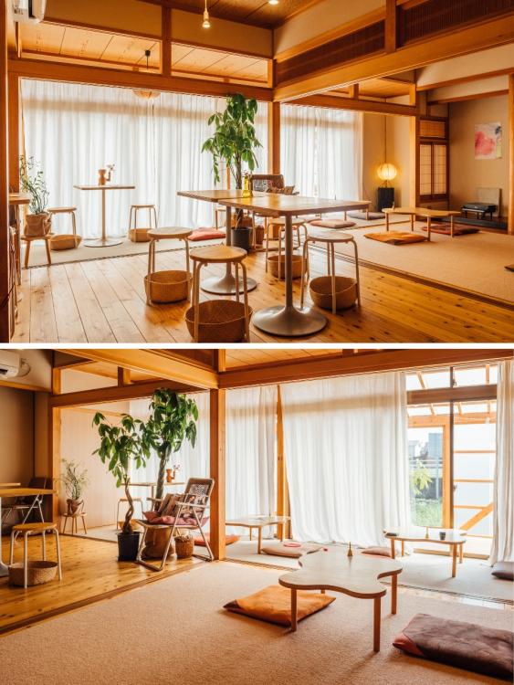 現在の店舗は空き家バンクで見つけた一軒家を、姉妹の手でリノベーション。「壁は全部張り替えました」というこだわりの空間は、デザインの仕事経験を持つ姉妹ならではのセンスが光る。廃材を活用したインテリアや、お店のカードと統一されたデザインなど、細部にまで心配りが感じられる。