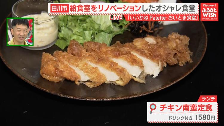 。そして、『いいかねPalette』に来たらぜひ立ち寄ってみてほしいのが、給食室を改装した『おいとま食堂』。食事はもちろん、カフェ利用もできるとあって、平日でも大盛況。おすすめは一番人気の「チキン南蛮定食」。大きな鶏肉を使ったチキン南蛮はボリューム満点。はちみつを使った優しい味わいの自家製甘酢とブランド卵を使った自家製タルタルとの相性も抜群。プレートに添えられた副菜はすべて手作りです。学校給食のように愛情がたっぷり込められています。
