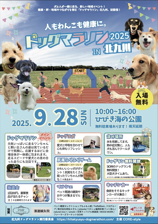 9月28日(日)、ひびき海の公園(北九州市若松区)で『ドッグマラソン2025 IN北九州』が開催されます。
