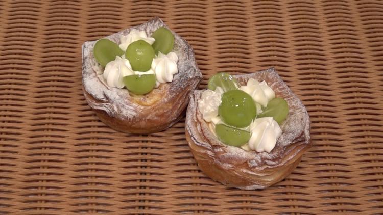 発酵バターを贅沢に織り込んだサクサクのデニッシュ生地の上には、カスタードクリームと旬のシャインマスカットがたっぷり!